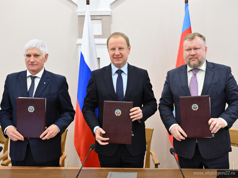 Торжественная церемония подписания соглашений состоялась в Правительстве региона сегодня, 16 декабря. Свои подписи поставили Губернатор Алтайского края Виктор Томенко, координаторы сторон краевой трехсторонней комиссии - исполнительный директор Союза промышленников Регионального объединения работодателей Виктор Мещеряков, председатель Алтайского краевого союза организаций профсоюзов Иван Панов, а также руководители краевых отраслевых объединений работодателей, в том числе Председатель Правления Союза строителей Алтайского края Александр Мишустин.